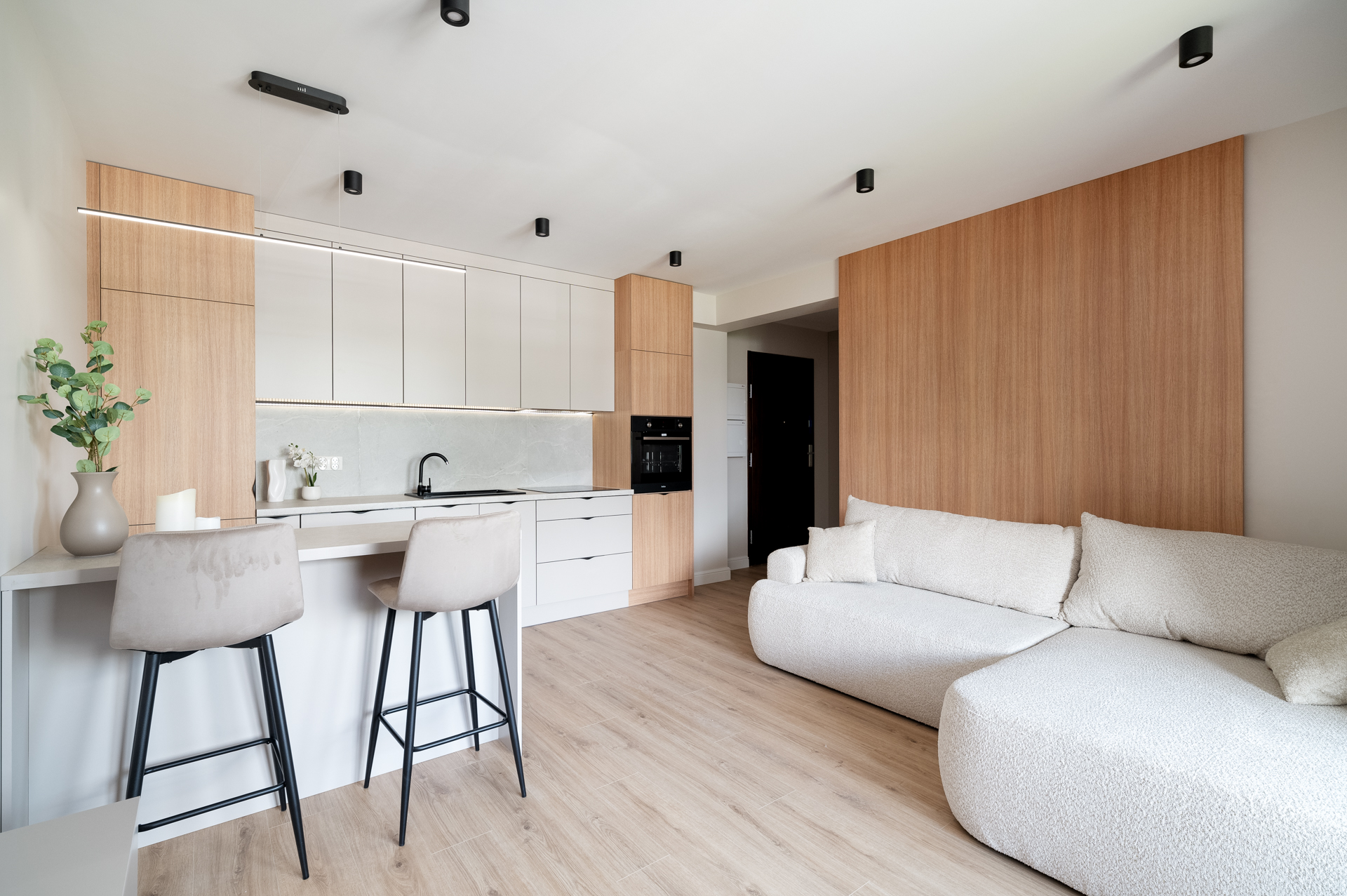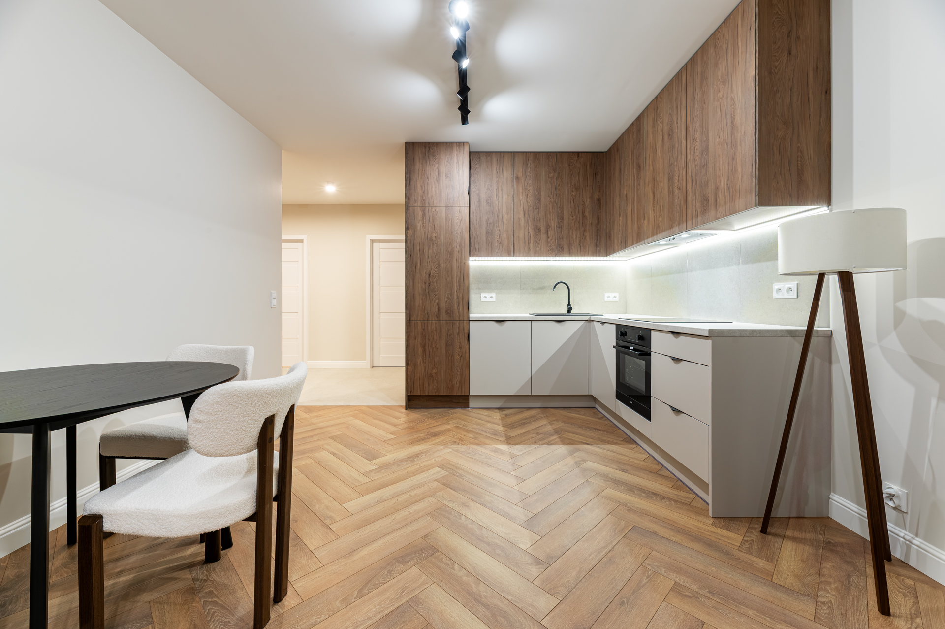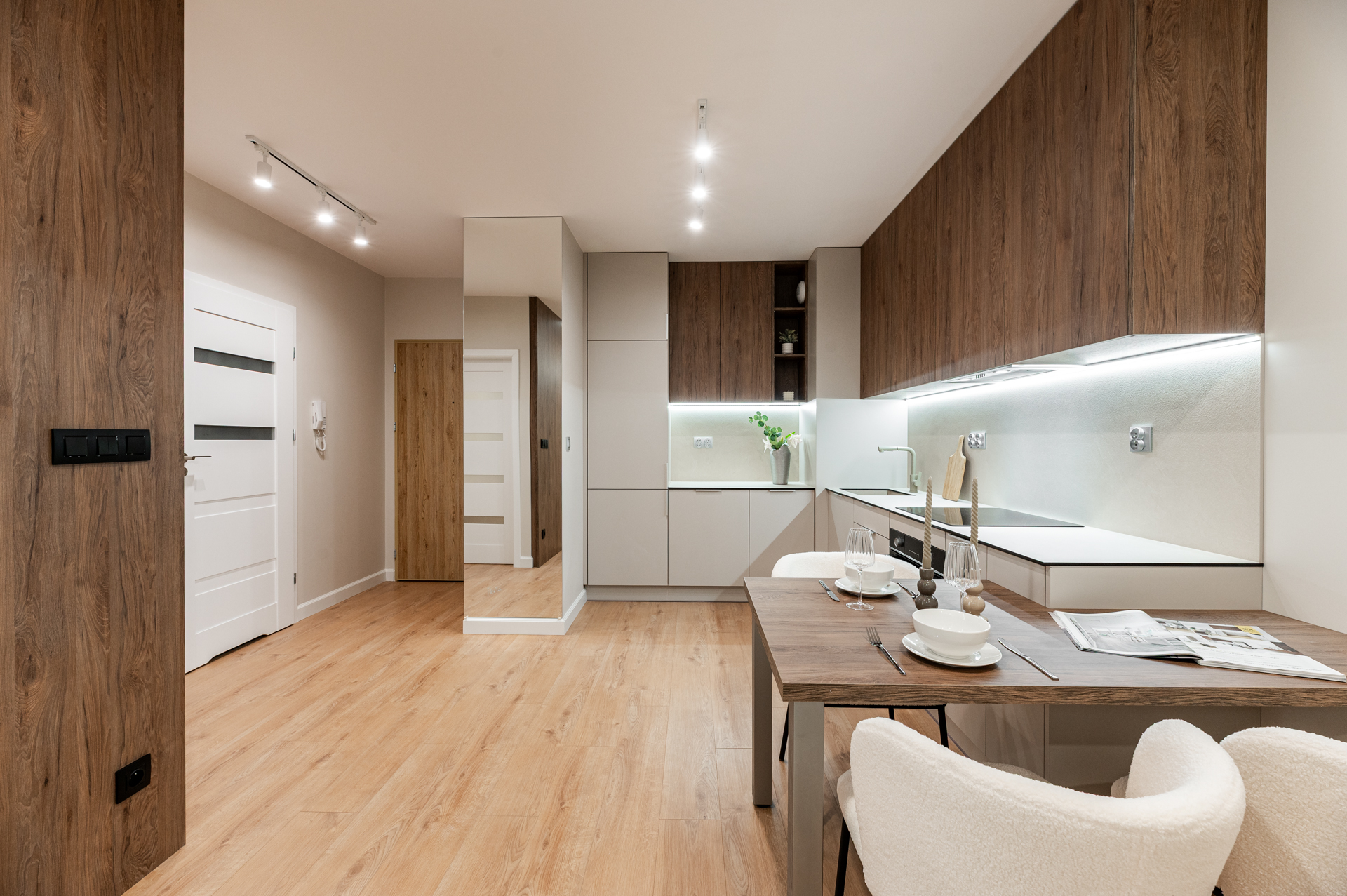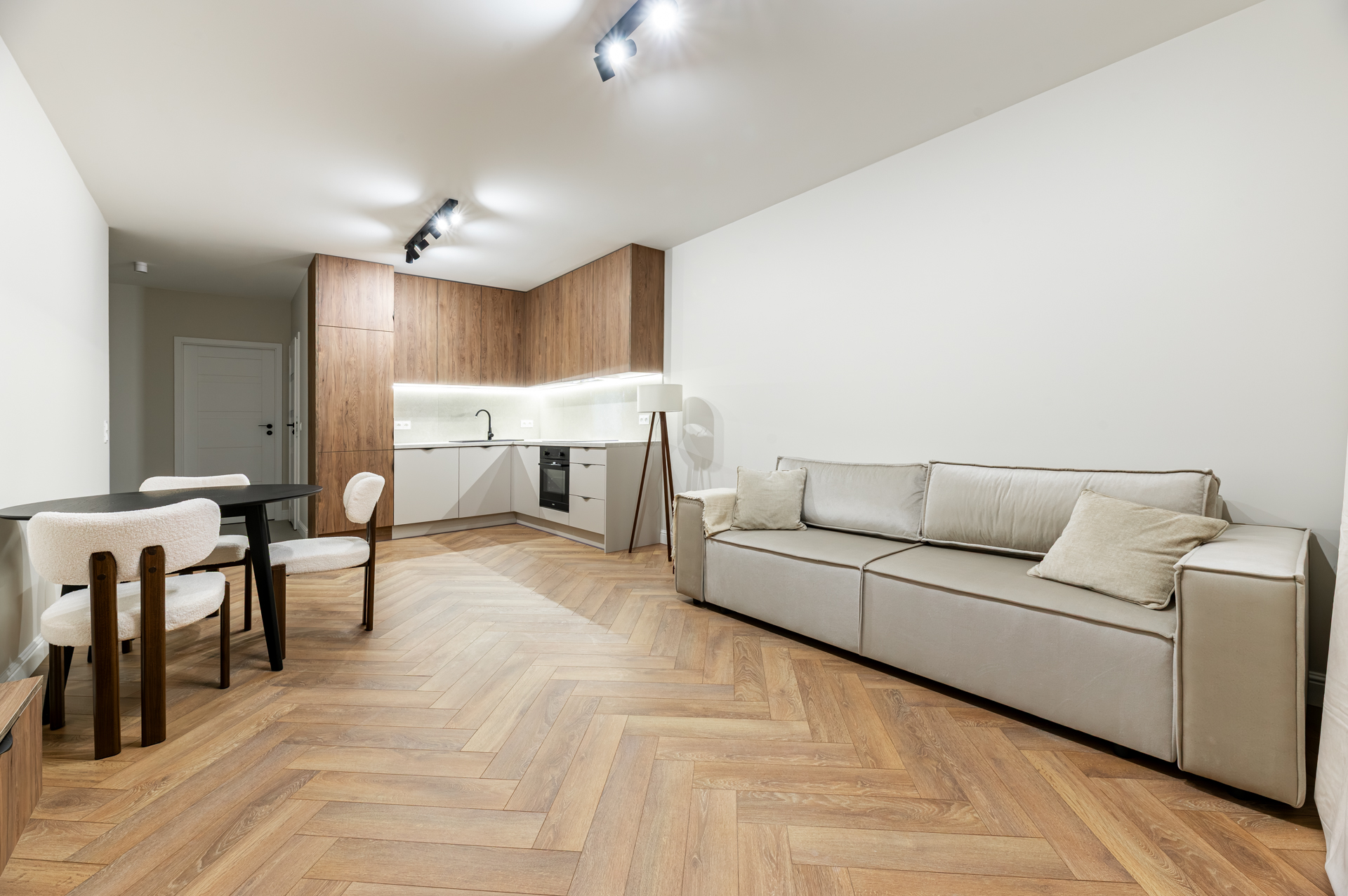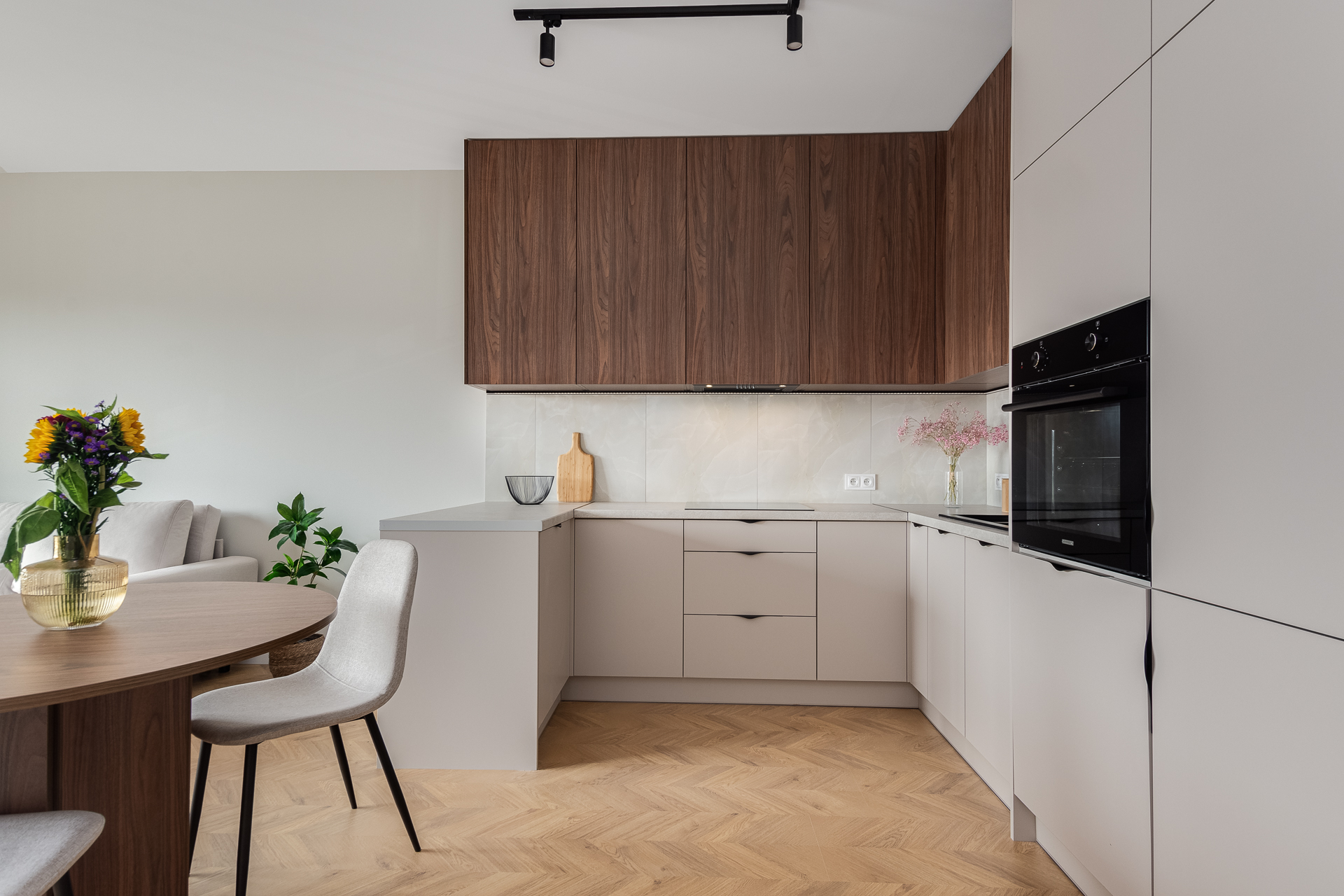 Kompletnie urządzone mieszkanie z kuchnią na wymiar, pełnym AGD i meblami – wchodzisz na gotowe z samymi walizkami.